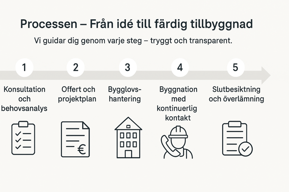 Behöver du ett extra sovrum, kontor eller större sällskapsytor? Vi skräddarsyr utbyggnader som smälter in med den befintliga byggnaden.